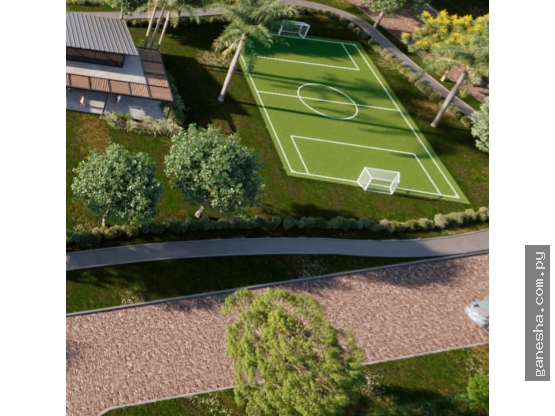 - Amenities: quincho equipado, cancha de fútbol, cancha de pádel, playroom, áreas verdes